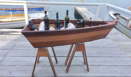 Michael’s Raw Bar Boats are made from 3/4" cedar planking over fir frames with mahogany stem and transom. They are then finished inside with polyester resin and outside with marine varnish. They come in three sizes. The largest two, 92” and 76”, can be used at weddings, clubs and other large parties with up to three active openers for the 76” and four openers for the 92". Ice insert tray, brass drain plug and display stands are included.